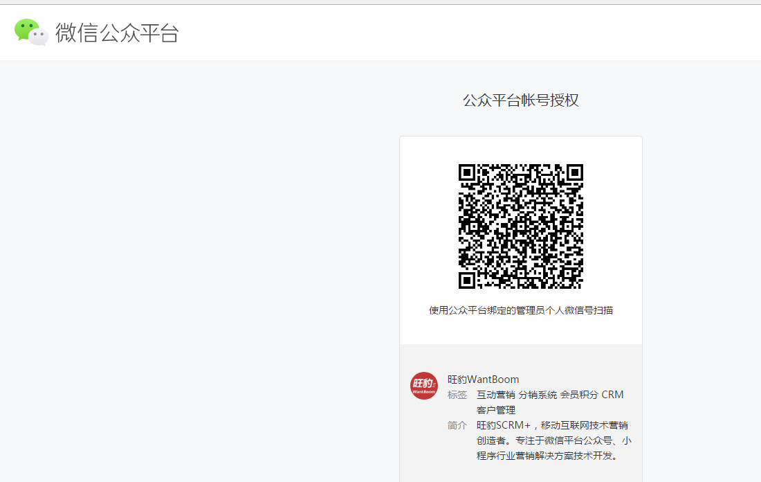 第三步,系统会自动跳转到微信公众平台,管理员个人微信号扫描二维码进行授权。