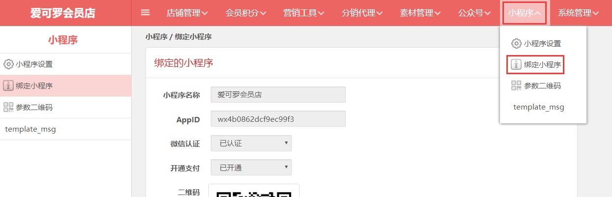 绑定小程序是指商家将小程序授权给旺豹系统,进行店铺的设置与管理。