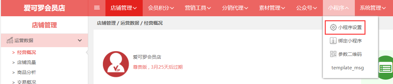 第一步,登入旺豹后台,点击“小程序→小程序设置”。
