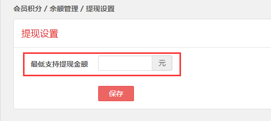 第二步,填写最低提现的余额,保存即可。