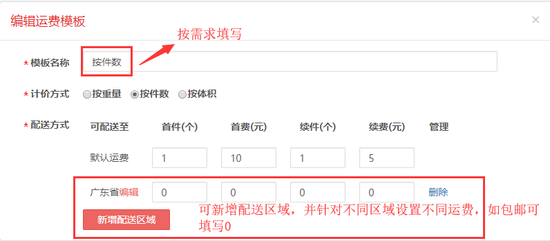 如何设置运费模版(按件按重量/件数/体积)