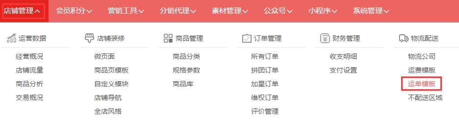 第一步,登入旺豹后台,进入“店铺管理→运单模板”。