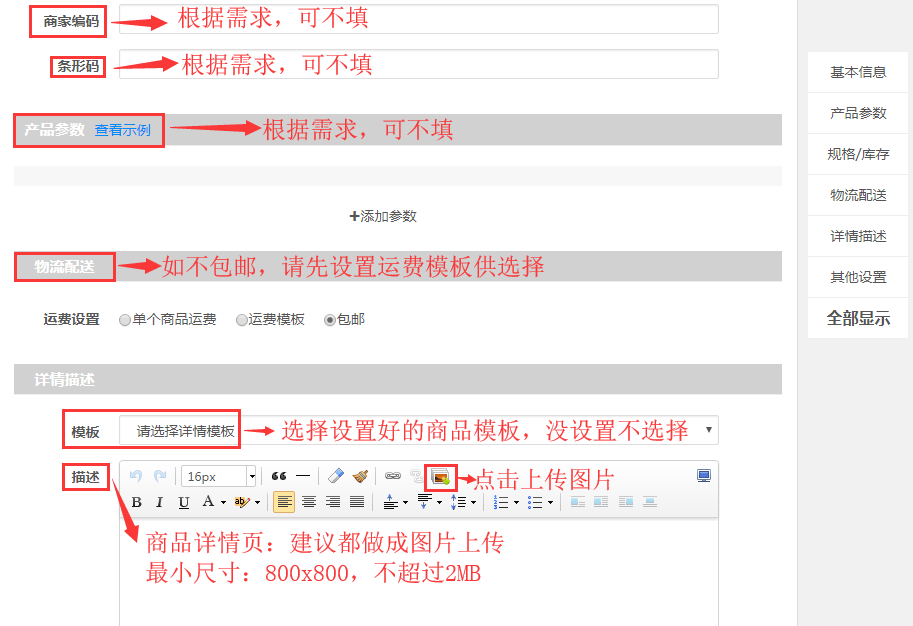 第三步,按照表格提示上架商品。记得保存哦。