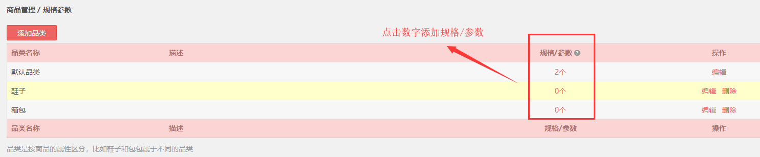 在此处添加规格参数,前提要先设置好商品类目。