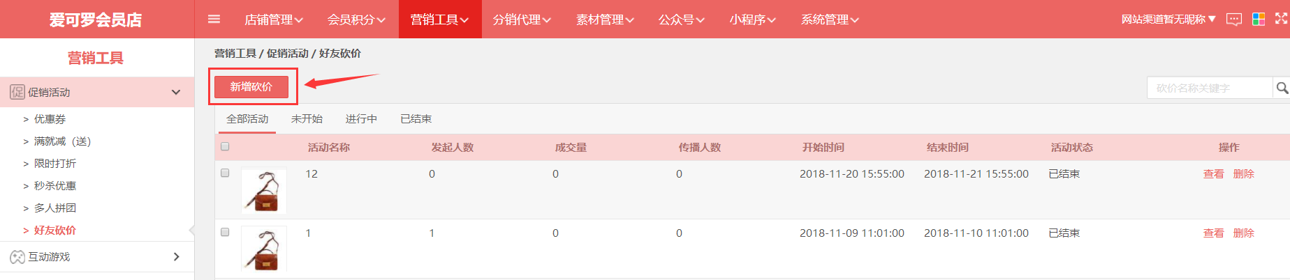 商家可登录店铺后台电脑端→营销工具→好友砍价