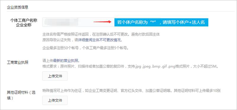 认证联系人信息:个体工商户联系人必须为法人;