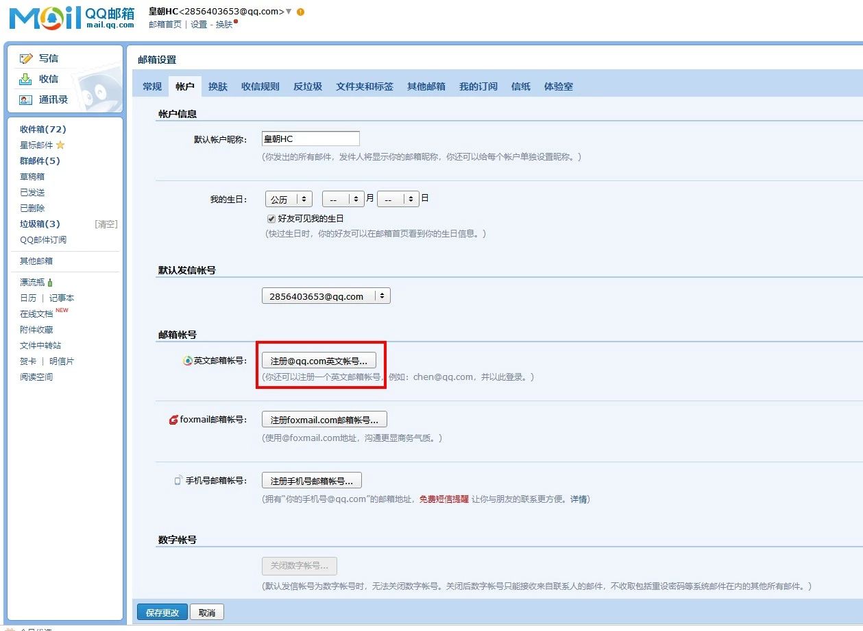 注:建议使用QQ邮箱,如果只有一个邮箱,可以用下面的方法获得一个英文名邮箱进行使用。