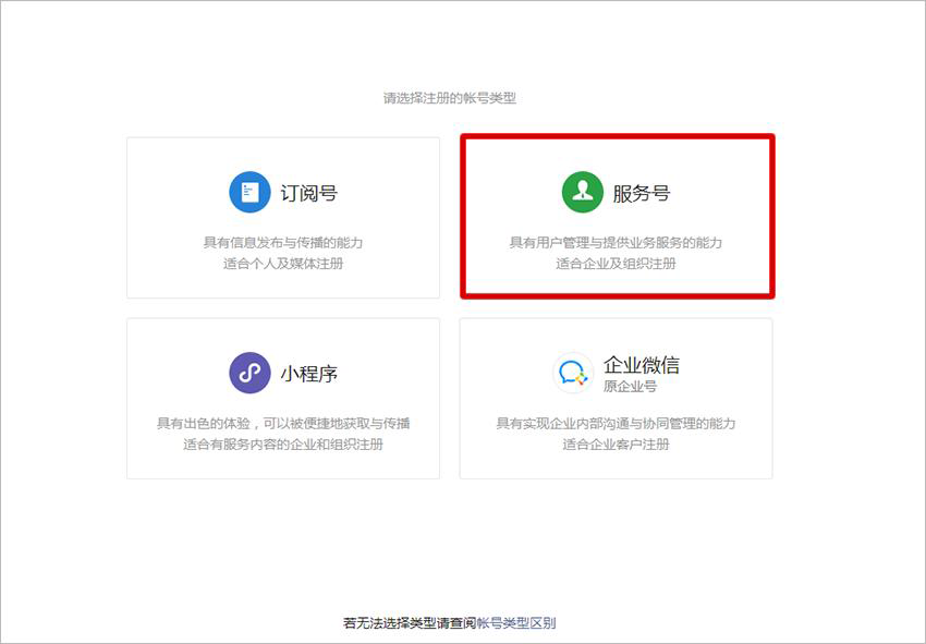 4、如果有再次出现类型选择,记住一定要选择服务号