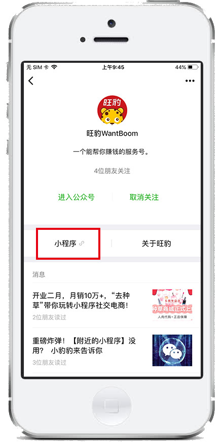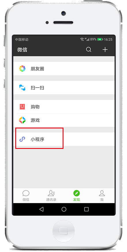 3.微信菜单“发现”——“小程序”